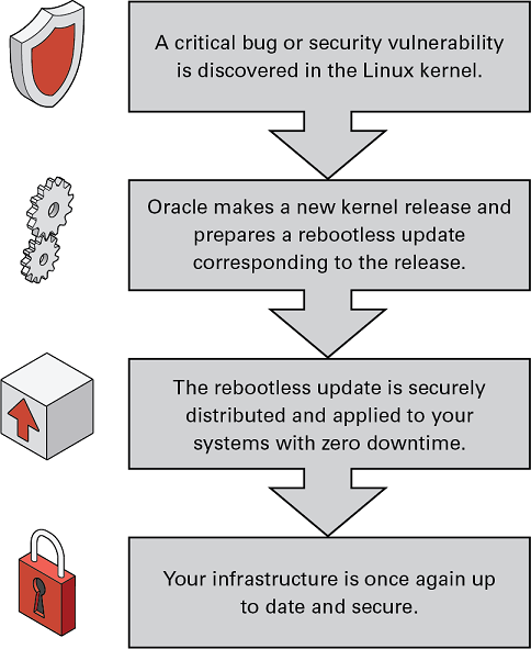 재부팅 없는 없는 업데이트는 Ksplice Uptrack 서버와 USN (Unbreakable Linux Network) 를 통해 제공됩니다.