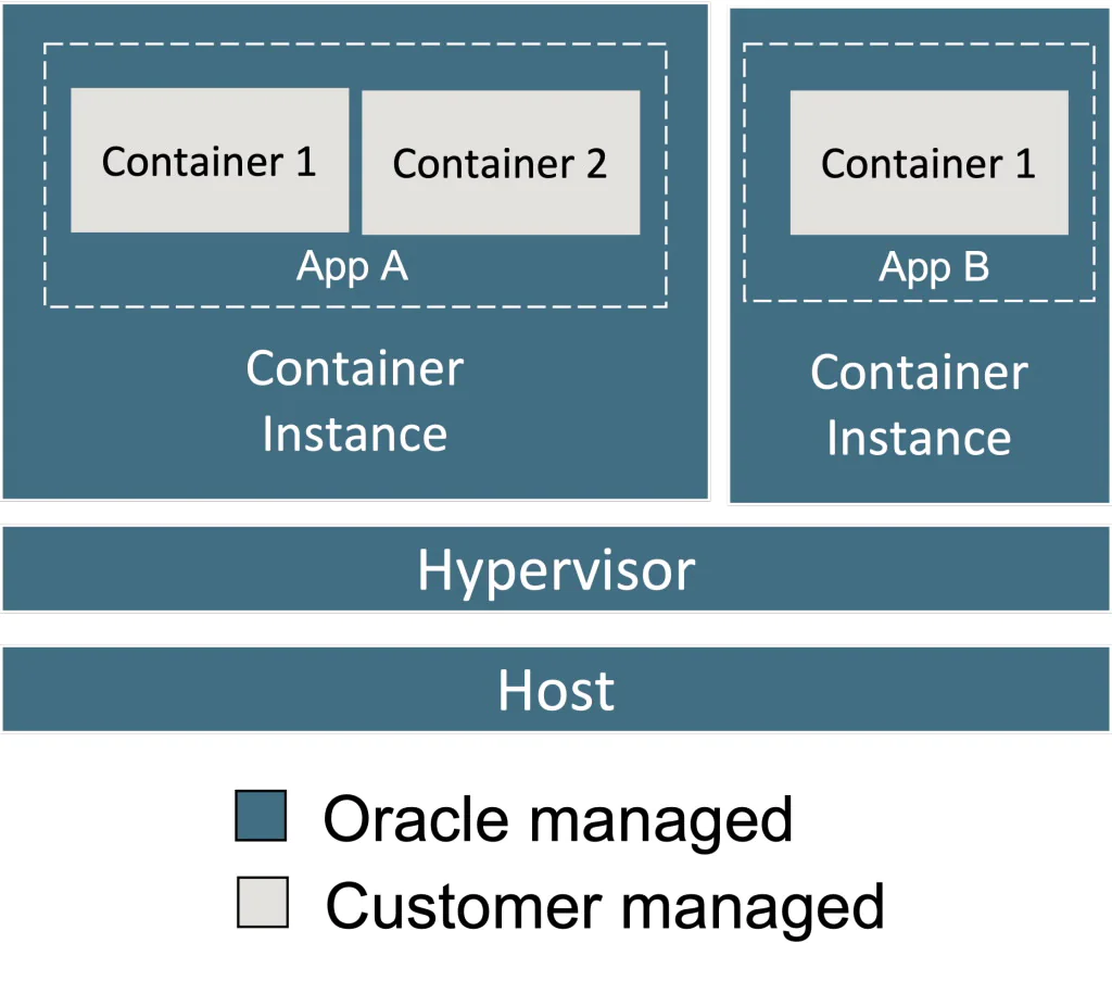 컨테이너 인스턴스는 VM과 컨테이너의 장점을 결합한 형태로 Oracle Linux 기반 구조를 가집니다. 아키텍쳐에 대해서는 별도 포스팅을 통해 다루도록 하겠습니다.