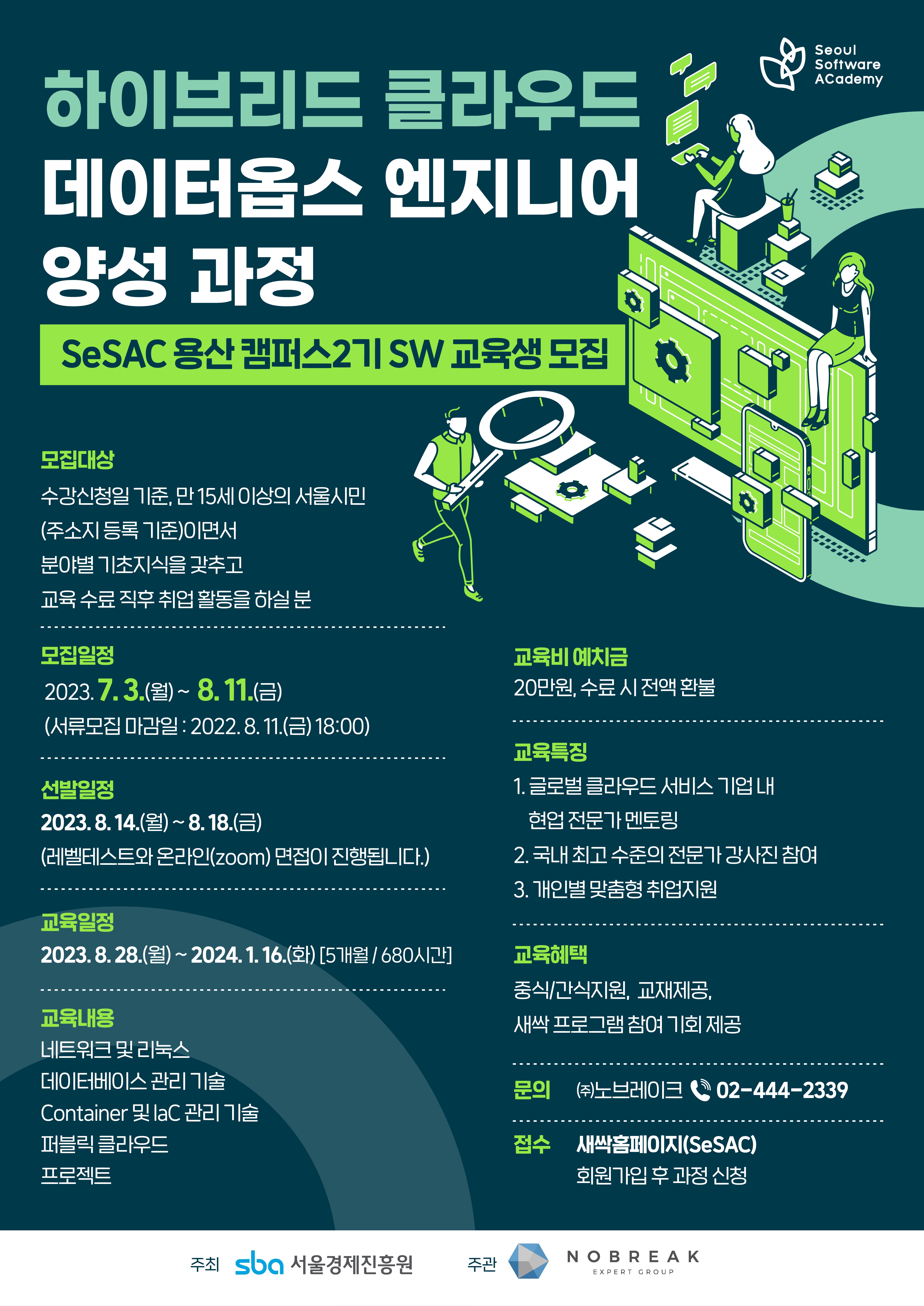 이번에 2023년 8월 개강 예정인 용산캠퍼스의 하이브리의 클라우드 데이터옵스 엔지니어 양성 과정을 저희가 수행하게 되었습니다.