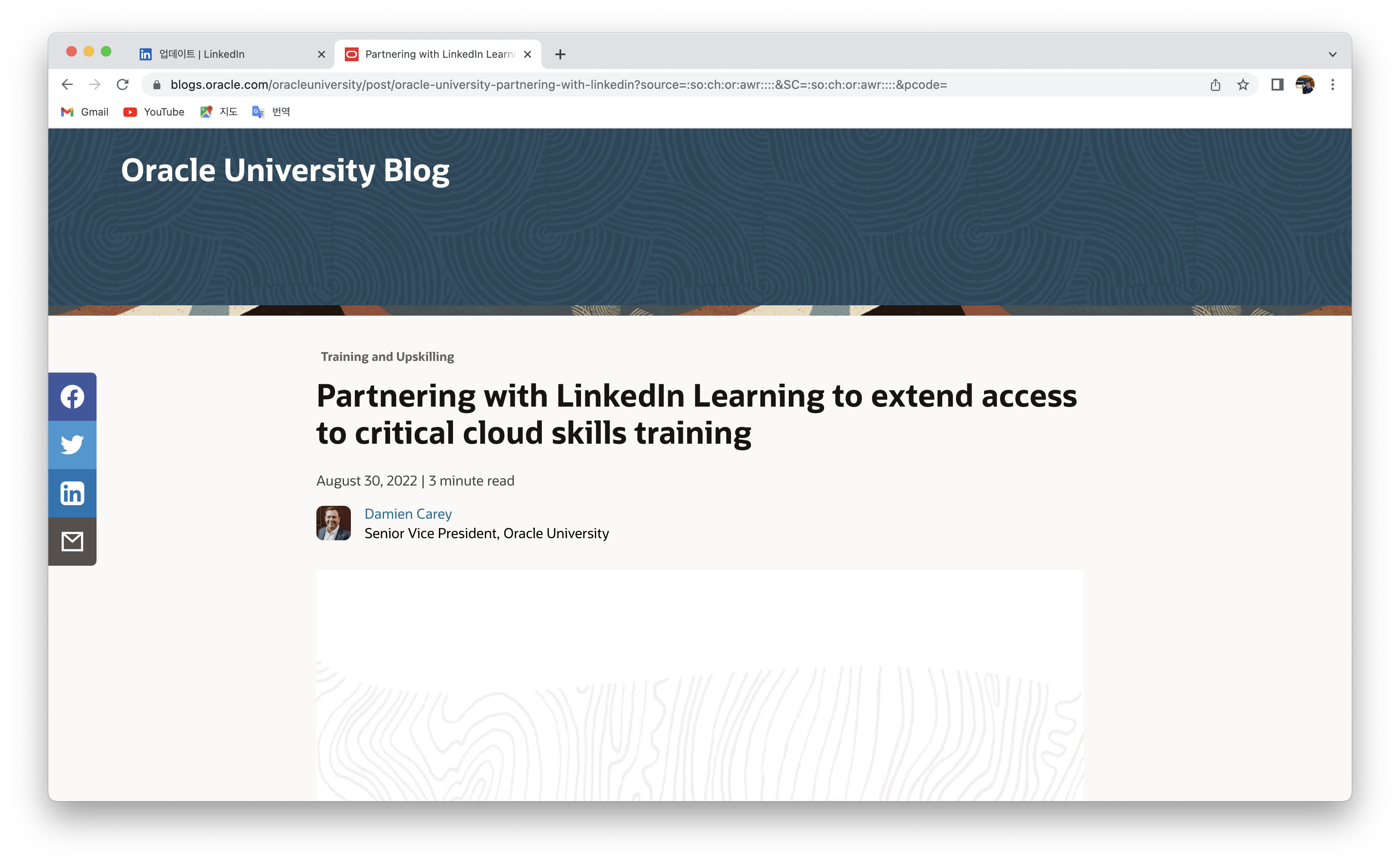 가장 따끈따끈하게 , 오라클 클라우드의 교육을 링크드인을 통해 학습할 수 있습니다.