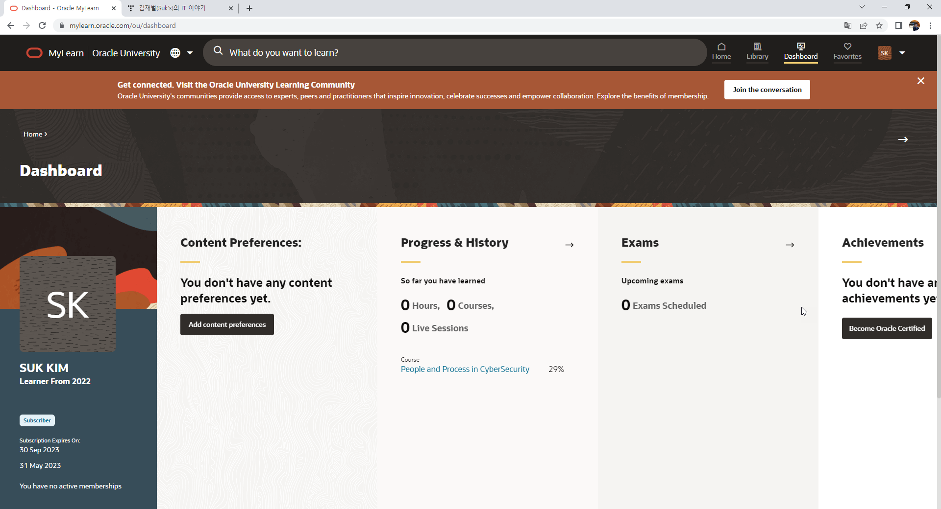 https://mylearn.oracle.com/ 바로 여기를 접근하셔서 오라클의 양질의 교육 훈련 시스템을 활용할 수 있는 것이죠.